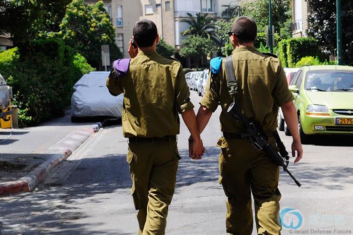 以色列从2003年起允许已经出柜的同性恋者参军,也允许军人身穿军服参加同志巡游。2012年6月,以色列国防军用两位男性军人手牵手的照片庆祝“同志骄傲月”。