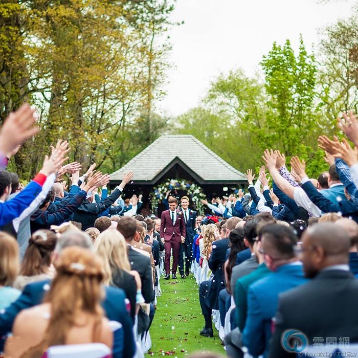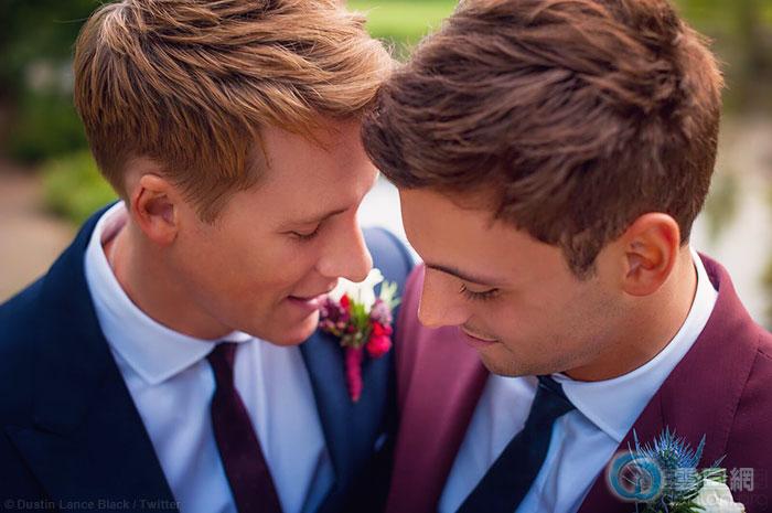 英国跳水金童汤姆·戴利和同性伴侣达斯汀·兰斯·布莱克今天在社交媒体上分享照片,证实他们的婚礼已经在上周六举行。