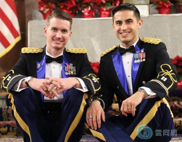 9年前在美国西点军校邂逅的两名美国军人,近日返回西点军校举行婚礼,这是首次有现役的男同性恋人在西点步上红毯。