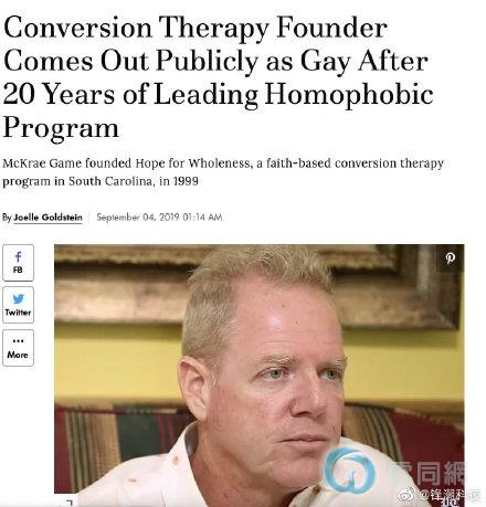 美国同性恋治疗中心创始人出柜:为做过的治疗道歉