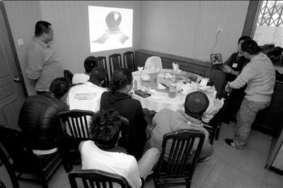 暖意融融的包厢内,没有宣传布景,也没有摆放整齐的桌椅,“听众”随意地围坐在饭桌旁,看着投影在墙壁上的防艾文字和图片。每个人都很专注,生怕错过了某个细节。
