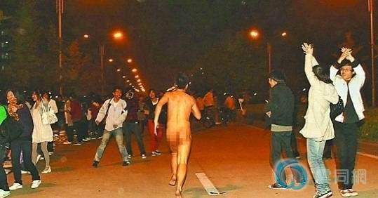 事情发生得很突然。据目击者称,晚上9:07,在学府街下沙最繁华的地段之一,刚下课的大学生刚刚蜂拥出来,买夜宵、逛店铺、看摊位、散步。人群中突然开进一辆蓝色福特车,一个浑身赤裸、腰间挂一块白色小布的男生从车里钻出来,在路中央狂奔起来。阳光地带_华人同志门户网站1sNW [ R/J _