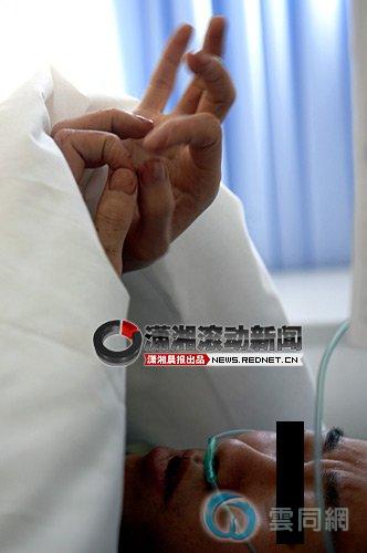 16日下午,长沙市中心医院泌尿科,经过抢救,张恒已脱离生命危险。他躺在病床上,眼球布满血丝,一脸疲倦,手上沾满干涸的血迹,和雪白的被单形成鲜明的对比。第二次见到记者,他像见到了朋友一样,和记者聊起来。