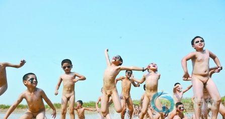 为了体现熊猫元素,赵半狄还给每个孩子套上一圈塑料制成的“竹叶”,算是“遮羞布”吧。到了裸奔现场,听说要去掉“竹叶”,有的孩子夹住双腿,显得很不好意思。