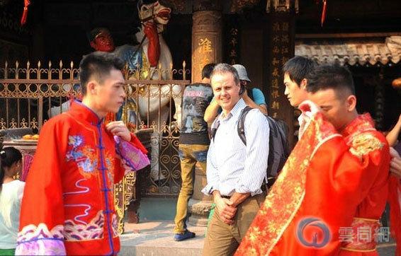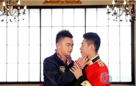 首对男同性恋者拍婚纱照当街拥吻