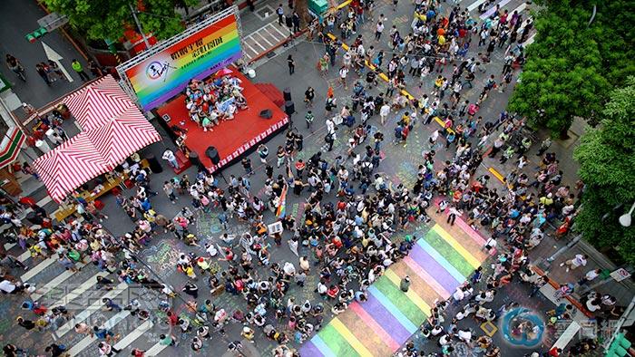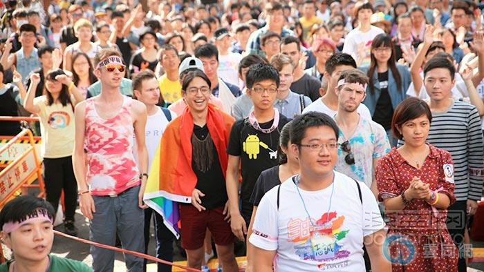 台湾伴侣权益推动联盟等上百个民间团体组成的婚姻平权阵线10月5日举办“彩虹围城”,约4000人参加活动,呼吁尽快保障婚姻平等权利。