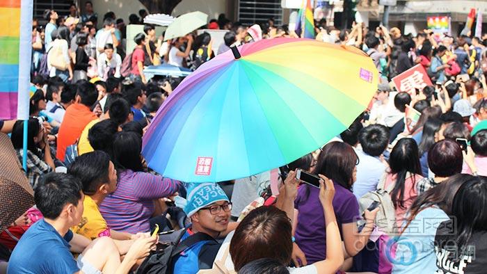 中国时报5日报道,“彩虹围城”参加者将112只象征同性恋恐惧症的大锁挂在“立法院”围栏上,要求“立委”支持婚姻平权,用“平权钥”解开“恐同锁”,现已确定21席“立委”通过书面声明支持婚姻平权。