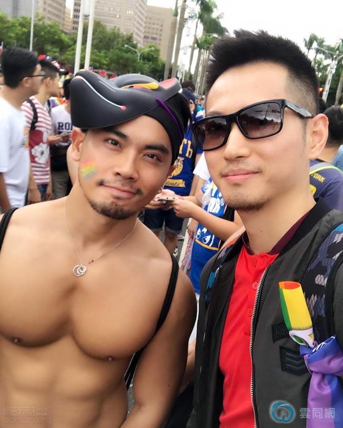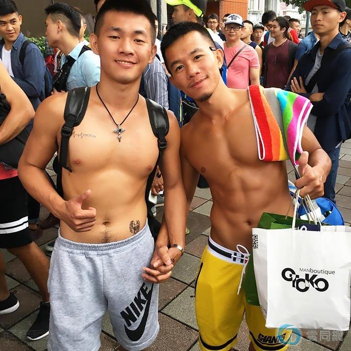 下午1时左右,游行人群陆续涌进凯达格兰大道,不少赤裸上身的猛男贴着标语、举着标牌走上街头,吸引人群的目光。下午2点左右,天空开始飘雨,却丝毫没有减退人们的热情,越来越多的年轻人站上街头,表达自己对“同志”的支持。