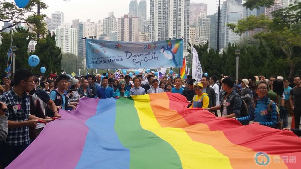 周六(25日)香港多个关注同性及跨性别权益的团体发起游行,争取同志平权。他们手持象徵同性恋平权的彩虹旗,以及“爱无阻隔”、“反歧视”等标语,由维园游行至中环爱丁堡广场,他们沿路高叫口号,希望同志及性小众(跨性人士)不需要再隐瞒身份,可以享有自由平等的生活。