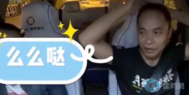 司机在听到对方的诉求后稍显无奈,不知如何是好的他双手抱着自己的头部,时不时伸出右手放在乘客肩膀上试图做退让,说:“快点快点,别在这难为我。”可乘客一直在耳边不依不饶,持续向司机正面发送索吻的信号:“你亲我一个,你只要亲我一个我就下车。”