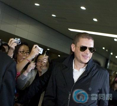 米勒终于在18点40分出现在媒体面前,他戴着雷朋墨镜,身穿黑色外套,有眼尖的记者认出,正是他代言的品牌服装,可见收了500万元代言费的米帅非常尽职。媒体和影迷在他出现的那刻,一拥而上。米勒身边的13位保镖立即形成一个保护圈,将他护在其中。米帅显然对中国影迷和媒体的热情始料未及,被簇拥着的他有些惊讶,但马上心情大好,掩不住地笑意。还在摄影记者的镜头前,很自然地摆起了POSE.虽然场面有些失控,但在“举步维艰”中,米帅仍旧频频和影迷挥手,微笑着接受粉丝送上的礼物,更是不忘在拥挤时对大家说声“take care”(小心)。