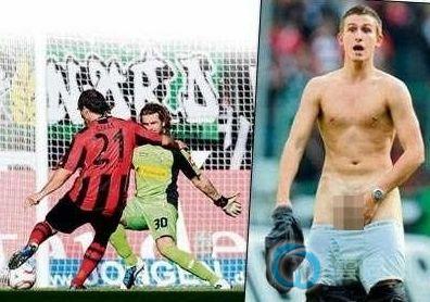 终场哨声响起,门兴的球迷,或许还有球场保安,都还沉浸在0-4惨败的震惊当中,只见一位金发短发、长相帅气的年轻男性球迷冲入了球场,迅速将自己脱得一丝不挂,并开始满场飞奔以躲避方才反应过来的保安。德国《图片报》评论道:“门兴在主场一球不进却丢了4个球,或者这4个球还不够冷门,所以门兴的球迷要罗体发泄一番。”
