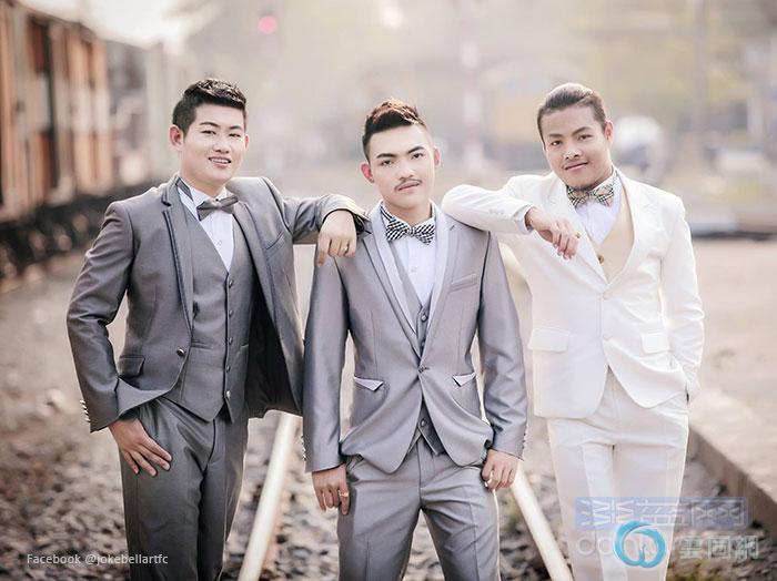 这三名男子分别用“玩笑”(โจ๊ก)、“铃铛”(เบลล์)和“艺术”(อาร์ท)称呼自己,本月15日他们按泰国传统习俗举办婚礼,然后在家乡乌泰他尼府共度蜜月。