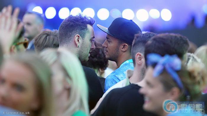 该男子皮肤黝黑,与白皙的萨姆·史密斯形成对比。二人在一起时不时耳语,有说有笑,看似非常开心。萨姆·史密斯在该男子的陪同下全程满面笑容。
