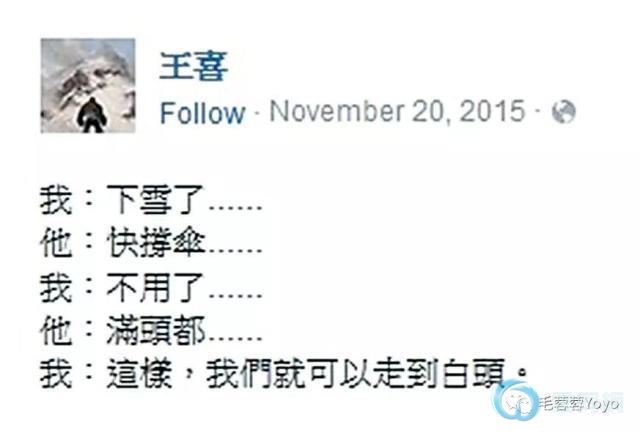 2015年,王喜和明仔复合。年底,王喜在FB上传了一张疑似搭着明仔胳膊的照片,并留言:这样,我们就可以走到白头。网友们纷纷留言祝福。